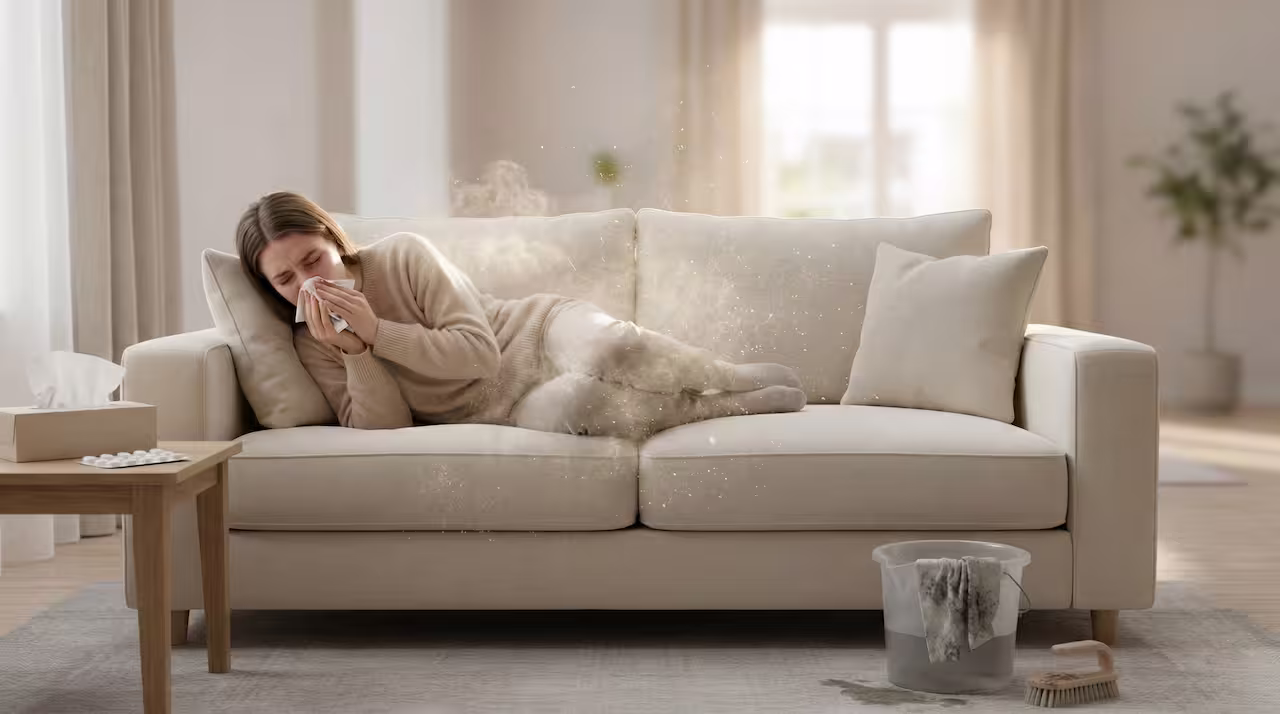 Alguns sintomas que podem estar ligados ao acúmulo de sujeira em estofados incluem:
